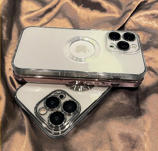 [ FREE SHIPPING] Luxury Logo Hole Soft Silicone Transparent Case Lens Protection Plating Cover for iPhone 13