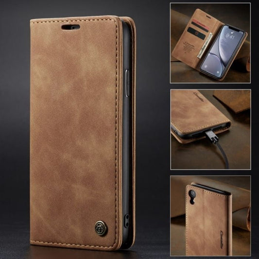 [ FREE SHIPPING] CaseMe Retro Leather Case For Iphone XR Book Style Flip Wallet Magnetic Cover Card Slots Case For Iphone XR - Brown