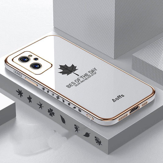 [ FREE SHIPPING] Luxury 6D Plating Case For Oppo A96 Maple Leaf Side Pattern Back Cover Soft Silicone Square Phone Cases