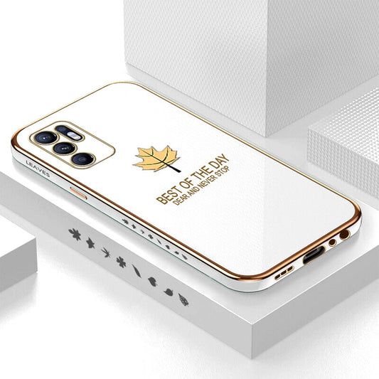 [ FREE SHIPPING] Luxury 6D Plating Case For Oppo Reno 6 Maple Leaf Side Pattern Back Cover Soft Silicone Square Phone Cases - Black