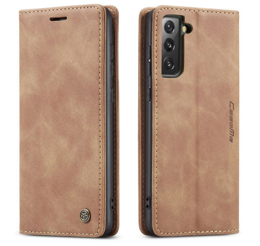 [FREE SHIPPING] CaseMe Retro Leather Case For Samsung S21 Plus Book Style Flip Wallet Magnetic Cover Card Slots Case For Samsung S21 Plus - Brown