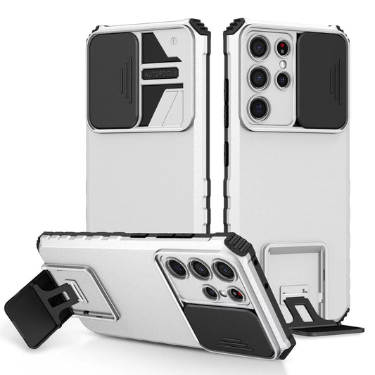 [ FREE SHIPPING] FOR SAMSUNG S21 ULTRA PHONE CASE HARD SLIDING LENS PROTECT KICKSTAND BACK COVER - BLACK