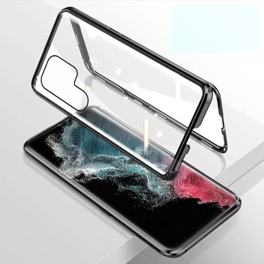 [ FREE SHIPPING] Double Magnetic Samsung Galaxy S22 Ultra Front & Back Tempered Glass Magnetic Case Metal Phone Cover - Black