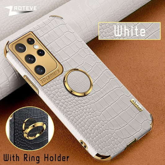 Luxury Slim Leather Case Lens Shockproof Back Cover For S23 Ultra