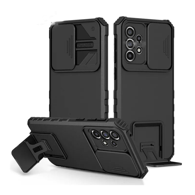 [ FREE SHIPPING] For Samsung Galaxy A13 Phone Case Hard Sliding Lens Protect Kickstand Back Cover - Black