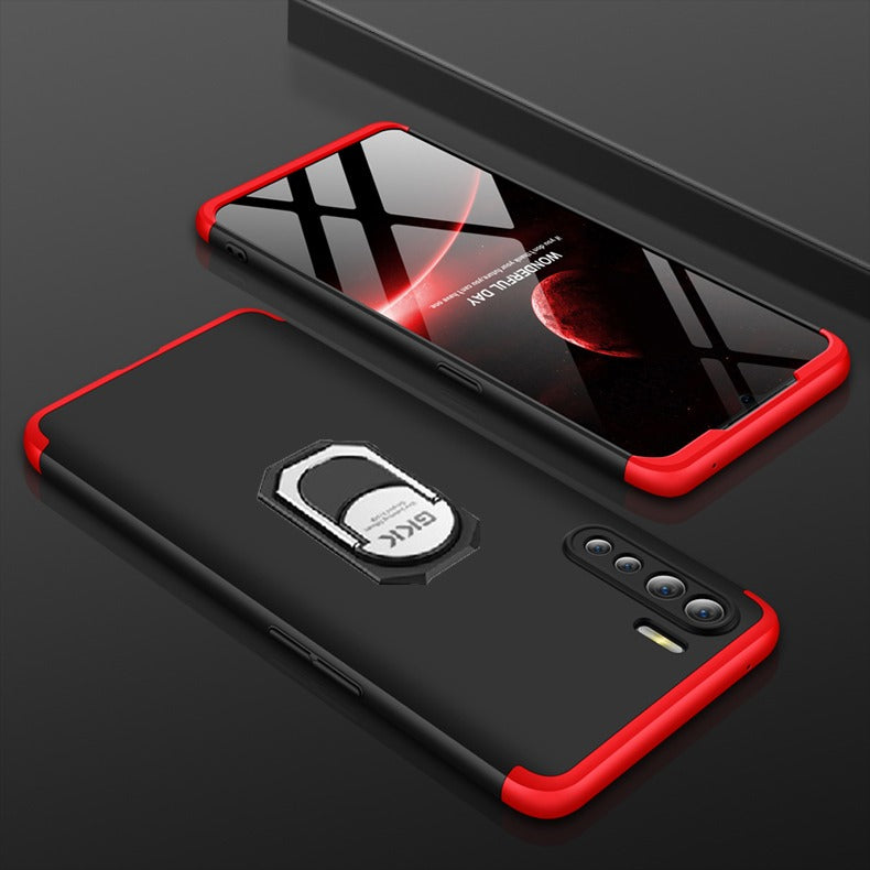 [FREE SHIPPING] Gkk 3in1 Full Protection Case For Oppo F15 (With Ring Holder)- Red & Black